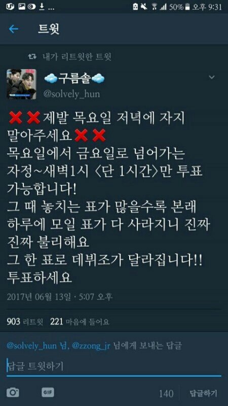 마지막투표시간이 16일새벽 1시라는거...AM1시에요... 잊지말고 투표해요~~