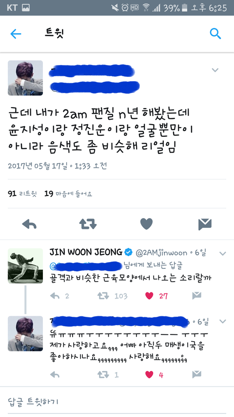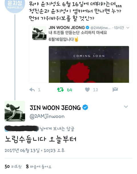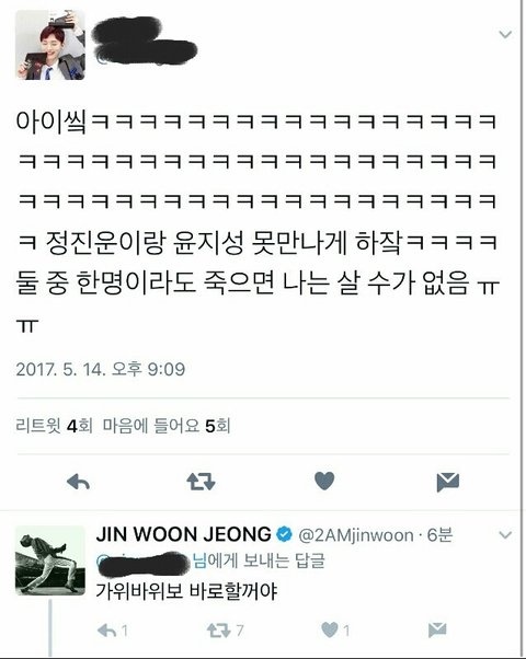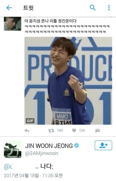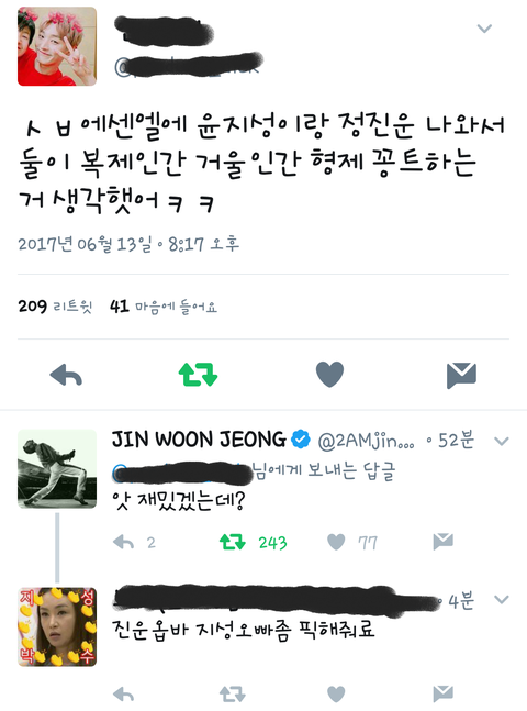 다들 알다시피 윤지성은 2AM 정진운과 닮은꼴로