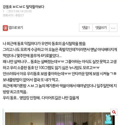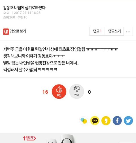 인생 재밌게사는 사람들만 모아둔거 아님?ㅋㅋㅋ어제 어떤 동호팬이 강동호땜에 장염걸려서 삼키로빠졌다는 글 봤는데 ㅋㅋㅋ몇시간뒤엔 또다른 동호회가 자기 동호 먹방보고 먹다가 사키로쪘다는 글 올라옴ㅋㅋㅋㅋㅋ나만봤냐고 ㅋㅋㅋ보고 혼자 웃음ㅋㅋ
