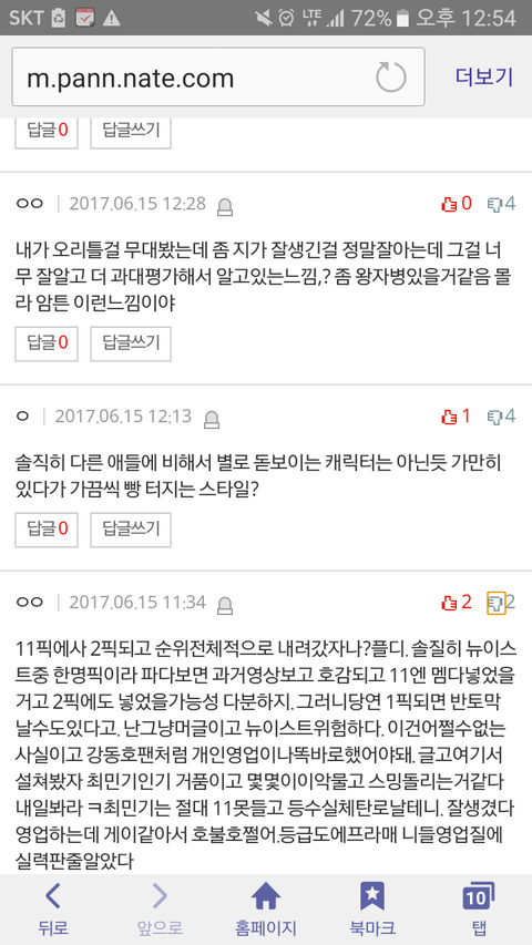 신경 쓰지 말고 이대로 빡친거까지 화력에 실어넣으면 되는거야. 민기 이제와서 조금 뜨니까 배척하는데 나도 기분 너무 나쁘지만 ㅠㅠ 대항할 수 있는 방법이 투표 밖에 없다