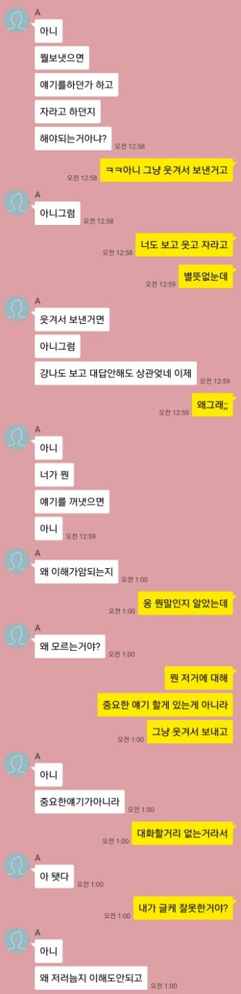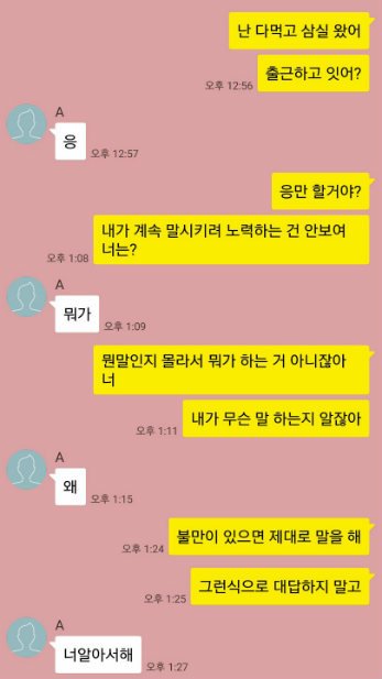 제 입장 : 애초에 싸울 일 아닌 거 남자가 예민하게 굴었지만 싸우기 싫어서 참았다.