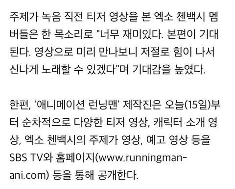 애니메이션 런닝맨 주제가 - EXO 첸백시 백현