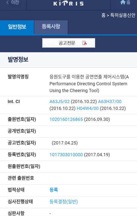 원격조종 응원봉 SM이 특허등록했네