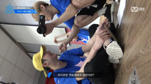 상남자 리허설 도중 일어난 더블링 사건을 옆에서 다소곳이 듣고 있던 라이관린 연습생
