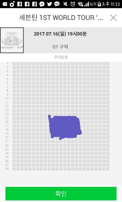 저기 자리 G구역이고 퍼렇게 색칠된쪽이 내 좌석쪽이란말이야... 괜찮을까..????ㅠㅠ 내 키가 154거든...ㅋㅋㅋㅋ퓨ㅠ 사실 스탠딩도 엄청고민하다 한건데..ㅠㅠ 콘서트 이번이 처음이여서 안그래도 어리버리할텐데.. 공연내내 밀리고 치이기만하다가 나오지 않을까 걱정이야ㅠㅠ