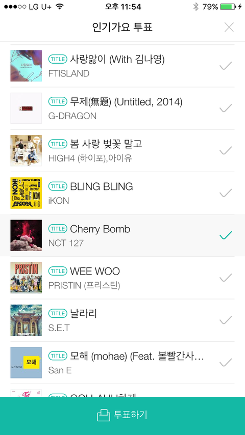 로그인해서 체리밤이랑 체리밤보다 순위 낮을만한 곡 2곡 더 선택해서 투표하면돼~