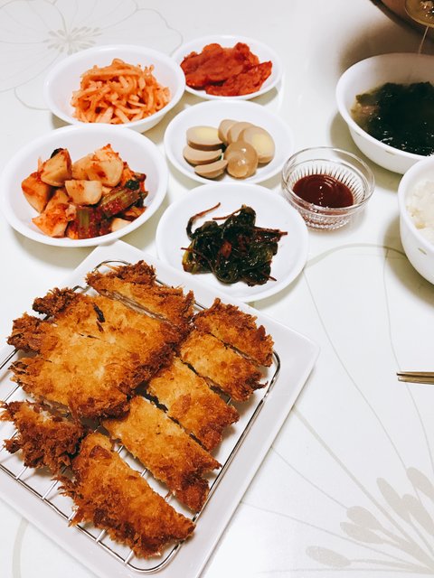 신랑이 애정하는 돈까쓰. 생돈까스 사다가 튀겼어요.