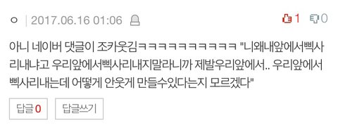 진짜 열폭러들 이것도 비추 테러ㅋㅋㅋ 여성 인권 타령하면서 잘난 애들한테는 심술 부림
