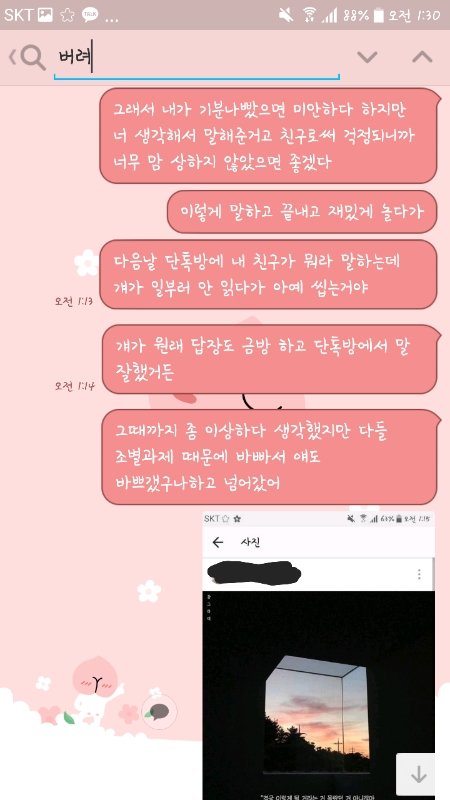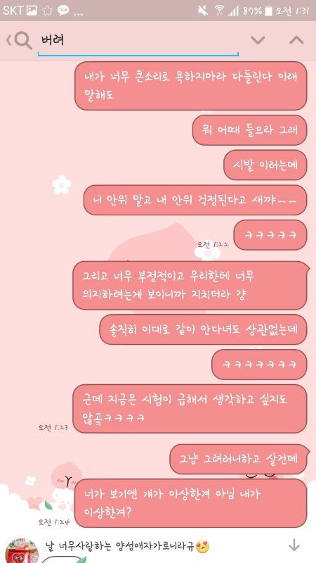 아무리 친해도 뭘 잘못했는디 모르는 상황에서 한살 어린년한테 저 소리 들으니까 재대로 화남ㅋㅋㅋㅋㅋ