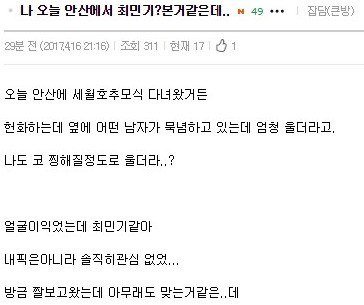 울오뽜들의 사건 사고에 눙물 흘리던 날들은 이제 안녕~ 최민기 팬 하면 팬질이 편합니다!!