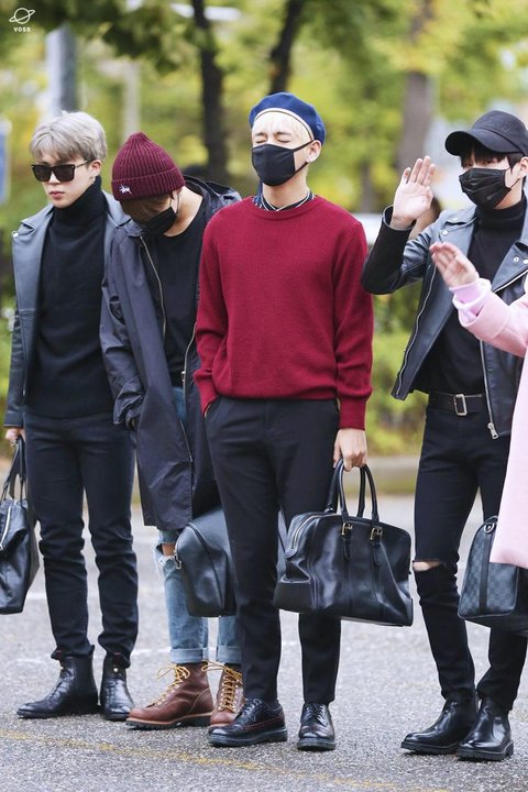 둘째형 모자ㅋㅋㅋ밑에는 리더형 옷ㅋㅋ출근할때는 팬들 보여주려고 이쁘게 멋내고 ㅋㅋㅋㅋㅋ 나중에는 편하게 있다가 형들 아이템으로 외출해꾸나