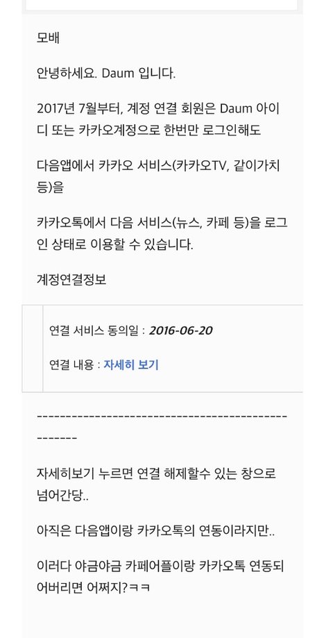 카톡계정이랑 다음카페 연동된대!!! 근데..