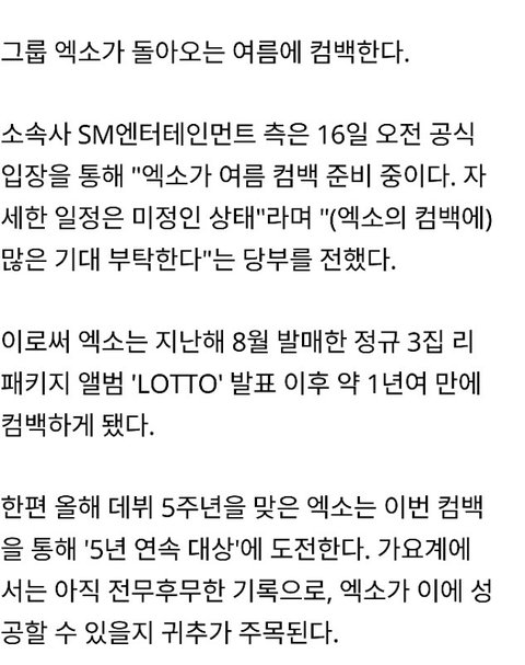 엑소, 오는 7월 컴백..전무후무 기록 세울까