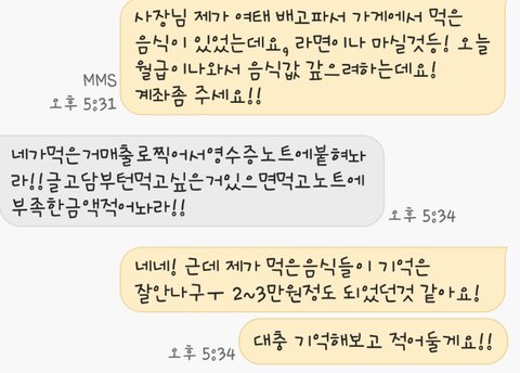 며칠 전 사장님께서 누가 시급이나 식대같은거 서류등