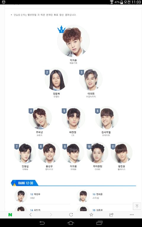 저때 top11에 워너원 6명이나 있음 그러나 저대로 데뷔했으면 한명제외하면 멤들은 나쁘지않지만 구성이 ㄹㅇ 별로 와중에 우진이 순위상승 정말로 놀랍고 서성혁도 대단하다진짜ㅋㅋㅋ