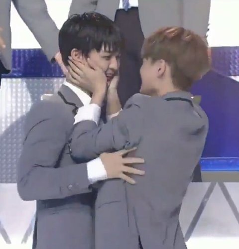 제일 앞에 앉아있으니까 첫번째로 축하해 주는 자린데 친구인 대휘 불리니까 너무 좋아함 ㅠㅠ 대휘가 진영 볼 잡는 거 너무 귀엽다 ㅠ