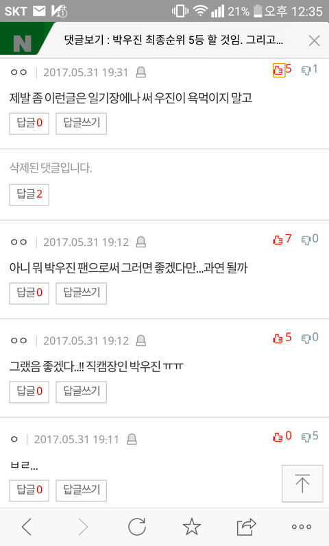 내가 5월31일에 박우진 최종5등할거라고 썼는데