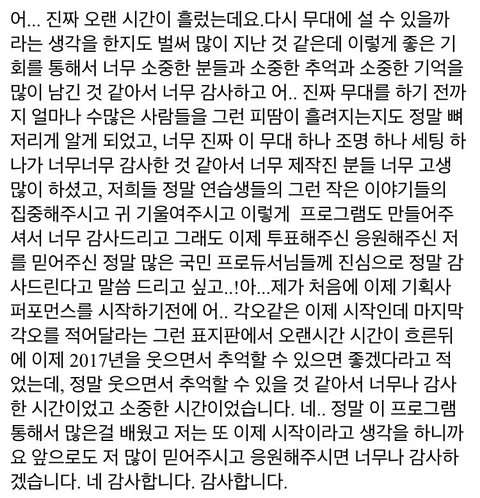 어제 마지막 소감을 저렇게 크고 사람많은데서