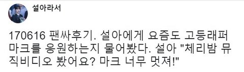 설아누나가 또 마크 언급했네