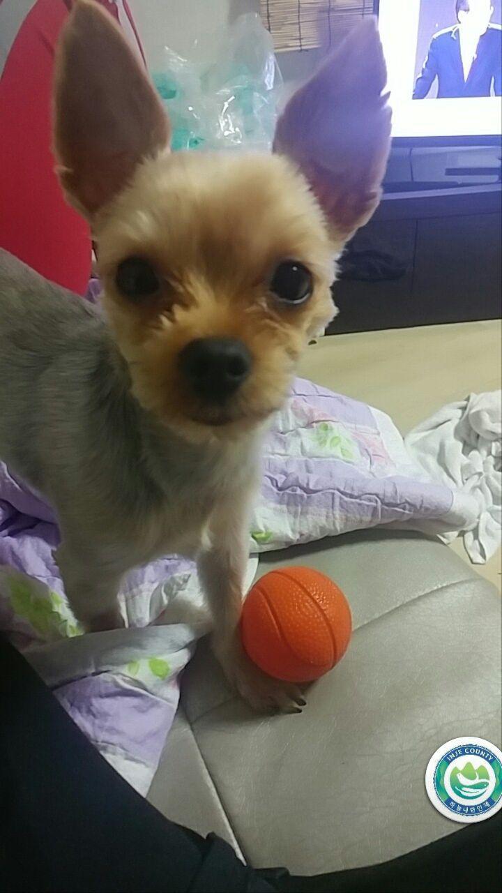 6월 4일 강원 인제군 남면 신남리 방향 도로 인근 가게에서 키우던 강아지를 잃어버렸습니다.