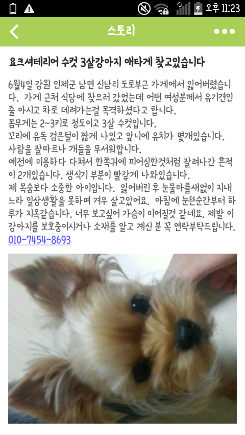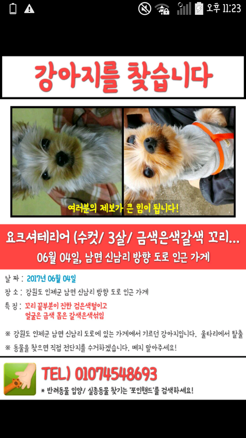 지나가다 저희 강아지를 보시면 저에게 꼭 제보해주세요!