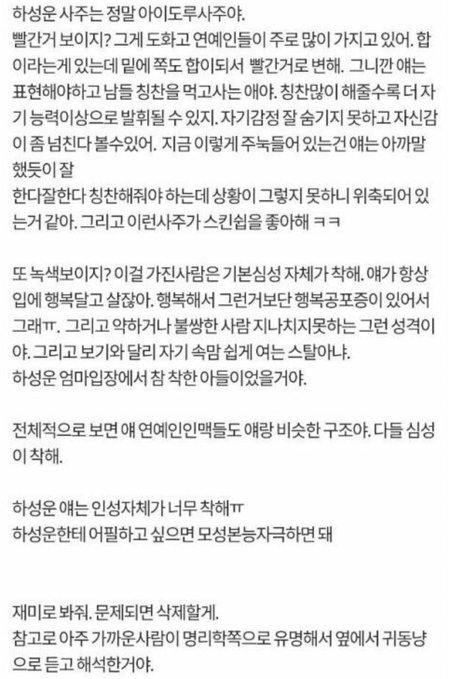 이건 하성운 사주 봐도 되고 안 봐도 됨 시간 있으면 봐