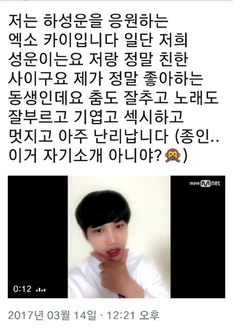 성운아♡진짜 수고 많았어 너가 열심히 한 만큼 모든 사람들이 알아봐준거라 생각해♡ 진짜 고생했고, 방송에서, 워너원으로 보자