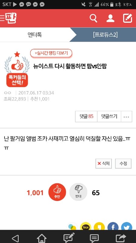 추천수 1001... 뉴이스트의 힘 대단한듯 진짜