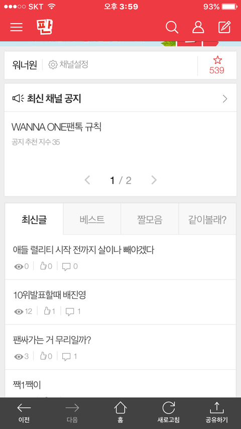 얼른 워너원 팬톡으로 가줘 예전 엔터 그리워서 그래 진심으로