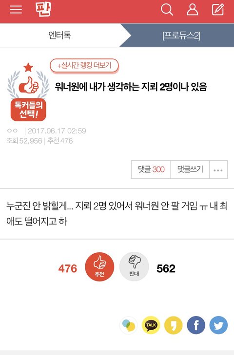 20명안에 들었던 아이들 누구하나 데뷔 해서 이상한 애 없었다... 니들이 진짜 니픽들 위한다면 그만 여기에 시간 낭비하고 워너원 애들에겐 축하를 아쉽게 워너원 못 된애들에겐 격려를 해줘라!애들 노력이 헛되지 않게 !!