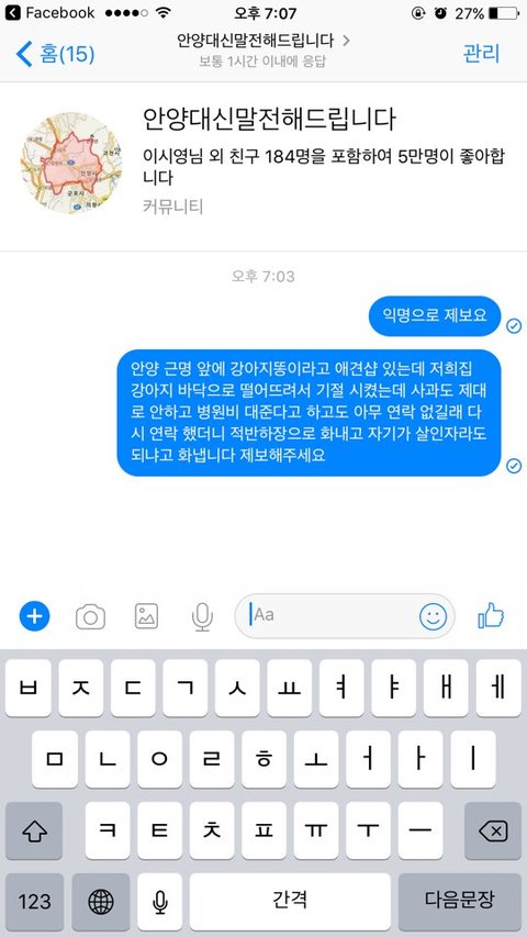 하자 하고 싶은대로 하라고 하여 페이스북 활동을 하지 않는 저를 대신해 큰딸이 짧은 제보글을