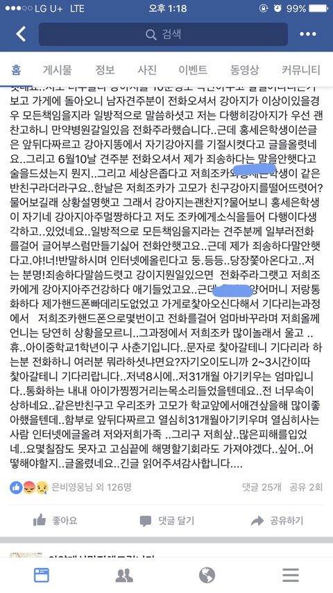 잘못된 애견샵에서 본인 입장만의 생각으로 허위성 높게 올린 글로 인해 피해를 본 중학교 학생 부모입니다.