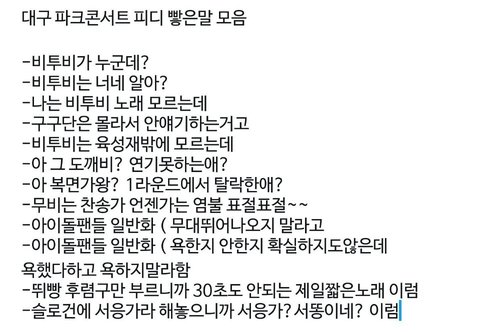 오늘 대구 콘서트때 피디가 공연 시작 전에 했던 말이라는데