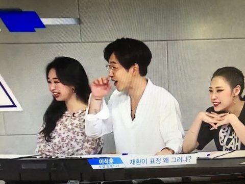 쌤들이 고음 올리는게 재환이랑 비슷하다니깐 장난으로 재환이 표정