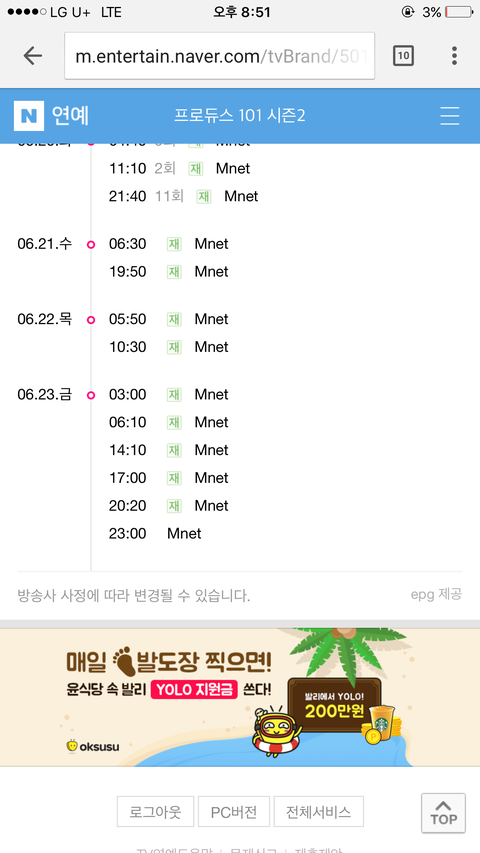 금요일 11시에 재방 안붙어있음 ㅇㅇ