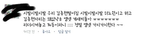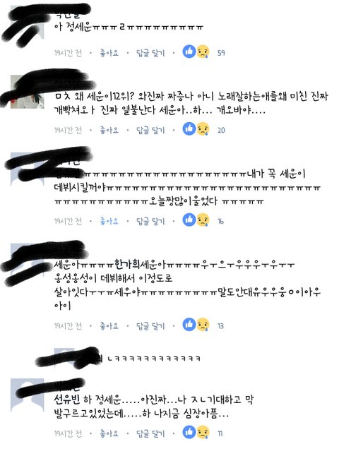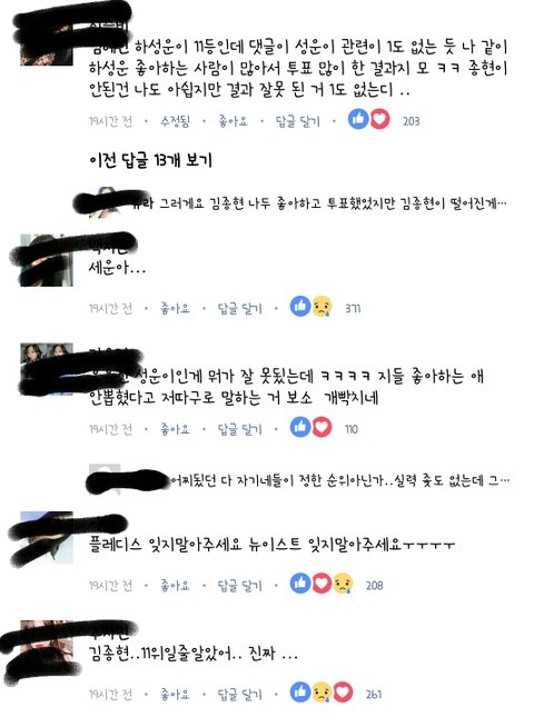 세운이 어디갔어, 세운이 데뷔 못해서 마음아파, 세운이 데뷔시킬꺼야 종현이 말도 안돼, 종현이 왜 데뷔 못해 이런 말들이 왜 나오냐고 진짜 아니 관련 글이면 나도 이해를 하고 공감을 하면서 보겠음 근데 무슨 하성운 글 마다 저러니까 ㅈㄴ 답답하고 진짜 내가 다 암울해 저게 배댓 전부도 아닌데 저 중에서 하성운 응원글이 세개임 ㅅㅂ 화나요 갯수도 오짐 ㅅㅂ