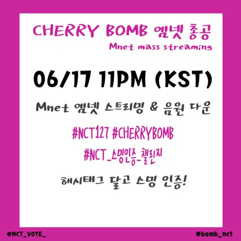 오늘 11시 엠넷 총공 다들 열심히 해서 엔시티 1위 시켜주자 ㅠㅜ 아직까지 사전투표 안 한 사람은 엠카들어가서 투표해야돼!! 시민들 힘내자..