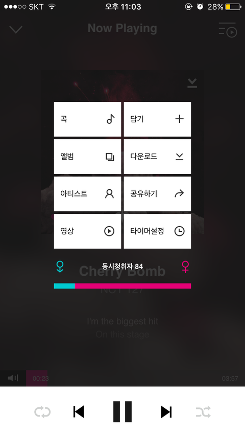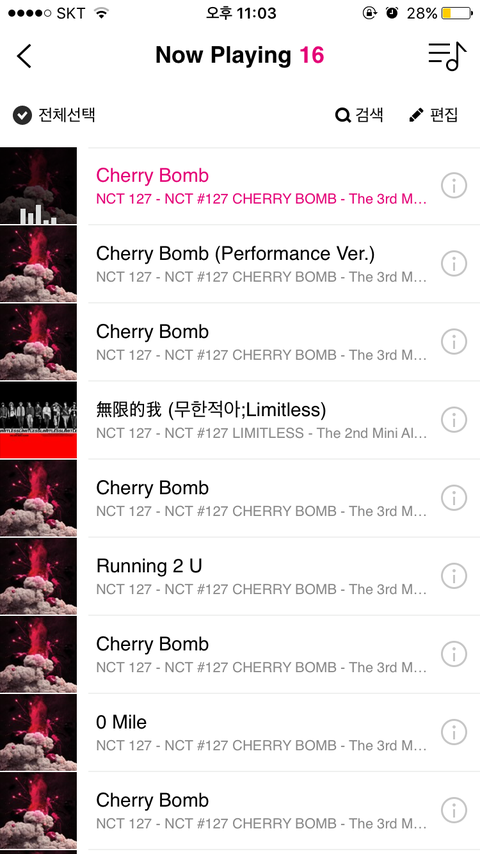 일단 리스트짜고 전체반복재생 하트 눌렀고
