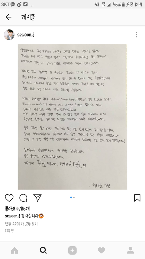 워너원고보고 너무 감격