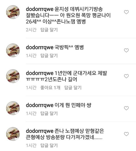 이건 윤지성 동생분 인스타에 달린 댓글ㅋㅋㅋㅋㅋㅋㅋ