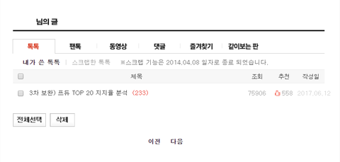 이는 2차에서 3차로 넘어오면서 11픽부터 꾸준히 넣어준 사람들은 2픽에서도 계속 지지해줬고