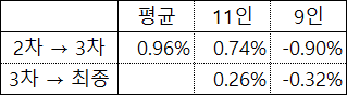 3차에서 최종으로 넘어가면서도 떨어진 케이스로 볼 수 있음