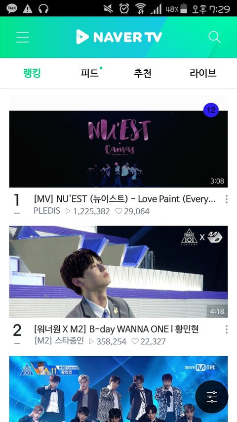네이버tv캐스트에서 'love paint 뮤비' 1위 유지중
