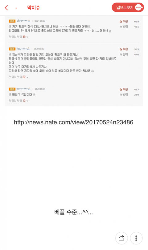 네이트 판 베플 보시다시피 임산부석에 앉아있는 건 다 한남이잖아요^^