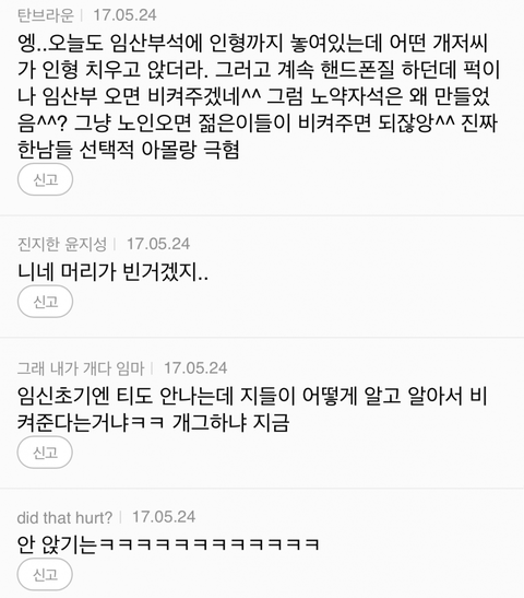 임산부석에 앉아있는 건 다 한남이잖아요^^