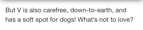 뷔는 무대에서 카리스마가 넘치는 것으로 알려져 있는데, 그의 잘생긴 외모와 놀라운 가창력이 팬들을 미치게한다. 하지만 뷔는 또한 낙천적이고 진실되며 강아지를 위한 부드러운 마음을 갖고 있다. 사랑하지 않을 수 있나?