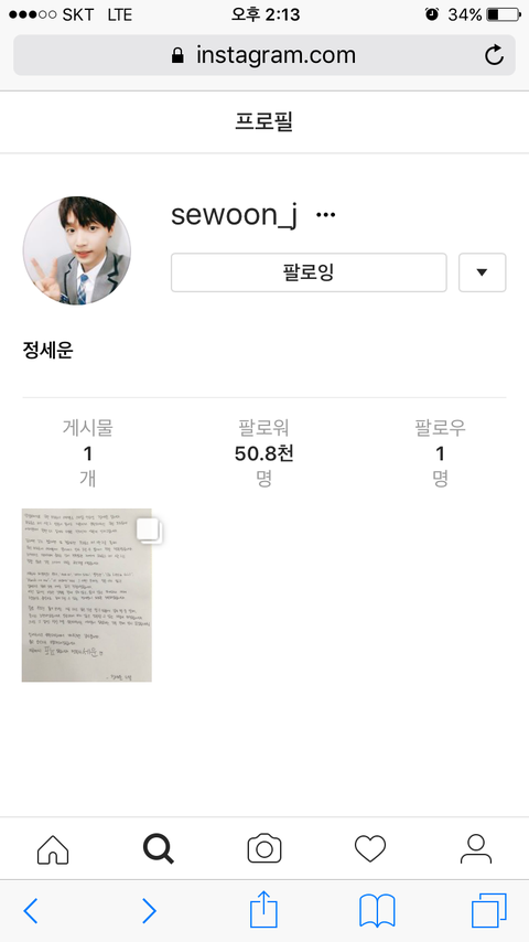 와 정세운 인스타 계정 생긴거 실화냐?