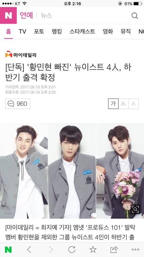 아무튼 워너원 데뷔 정말 축하하고 민현이 잘 챙겨줘! 뉴이스트 대박나자 ♥