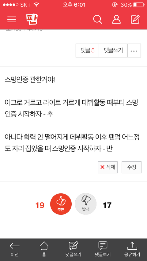 반대 잘못 눌렀다는 친구 있어서 20 : 16 으로 데뷔활동 때부터 스밍인증 하는 걸로 결정할게!