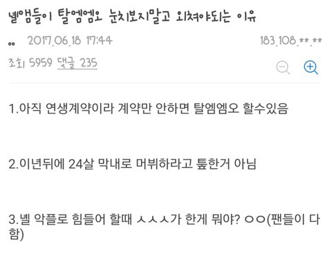 악플같은거 관리 제대로 시켜주는 소속사 만나라